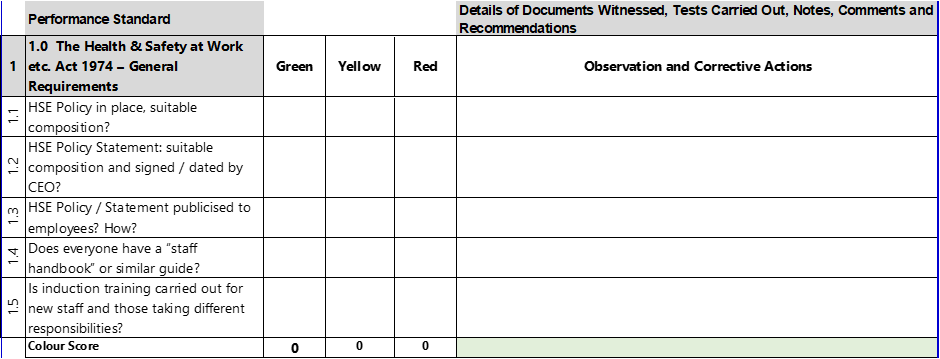 HSE Performance Audit – Gap Analysis Tool